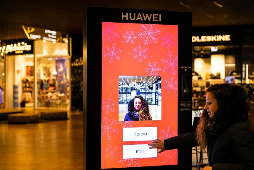 L’albero di Natale smart è sponsorizzato da Huawei. Come funziona? Fino al 6 gennaio le persone potranno scattarsi una foto con gli smartphone messi a disposizione dall’azienda (forniti dagli “elfi” in piazza o installati sui totem). Le fotografie saranno inviate al cuore tecnologico dell’albero, che analizzerà le immagini, identificherà le emozioni dei soggetti e si illuminerà di conseguenza, scegliendo, ogni 15 minuti, uno dei quattro colori disponibili. Dal rosso al bianco, in base al sentiment dominante.