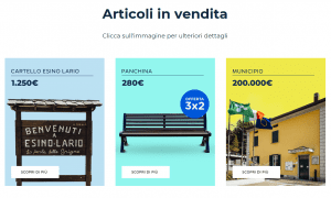 È un modo per attirare l’attenzione su un problema, non per trovare reali acquirenti. Mentre il denaro di Missione Comune sarà destinato a migliorare le infrastrutture e garantire nuovi servizi. Per esempio, la «connessione a Internet più veloce, per riuscire anche noi ad evolverci verso i concetti più innovativi di città smart» dice il sindaco.