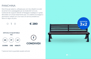 Sul sito vendesiesino.it sono disponibili a “manifestazioni di interesse” lampioni, panchine, insegne, ma anche il palazzo del Municipio e il museo (scontato del 15%). All’ingresso del paese c’è il cartello “vendesi” e ogni elemento è accompagnato da etichette giganti con tanto di prezzo e codice a barre.