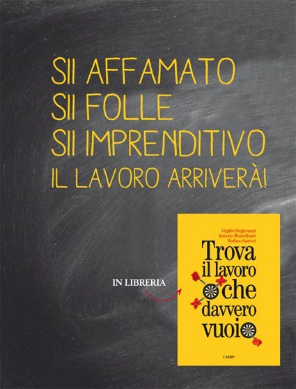 In Trova il lavoro che davvero vuoi (10 euro, Cairo Publishing) Virgilio Degiovanni, Antonio Montefinale e Stefano Santori, da più di vent’anni imprenditori nel campo editoriale, della comunicazione e della formazione, ci spiegano come.