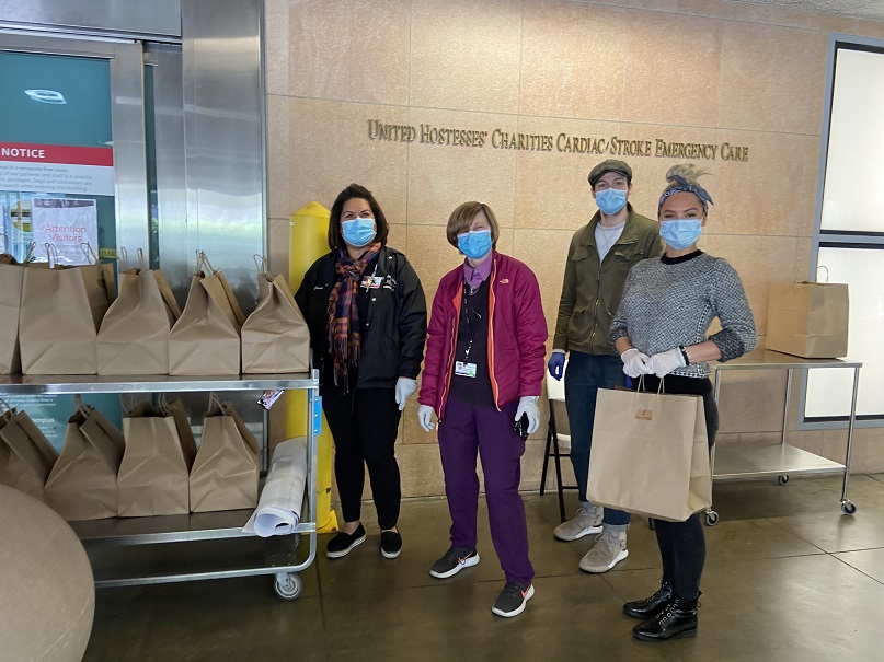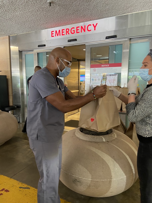 A metà marzo, quando la pandemia è arrivata anche in California e le aziende hanno iniziato a chiudere e licenziare, Emanuele si è trovato a un bivio: chiudere o andare avanti? «Dopo un giorno di cancellazioni di eventi, ci siamo seduti intorno a un tavolo e abbiamo deciso che dovevamo continuare a lavorare, per aiutare le famiglie che si trovavano a casa in smart working e con i figli a casa da curare. Vivo a Marina del Rey, ho le cucine in Los Angeles/Venues: abbiamo lanciato subito un delivery program chiamato Crateful Home Kitchen, economico ma con cibo salutare, con ingredienti che aiutano il sistema immunitario. Ho aggiunto il sottovuoto, così il cliente può scegliere quando mangiare una cosa o un’altra per 5 giorni, e vari pizza kit per far divertire genitori e bambini. Ma non mi bastava. Sentivo che dovevo fare qualcosa per la città. Il nostro cuore si gonfia quando ha uno scopo. Volevo sentirmi parte di qualcosa di più grande e ringraziare chi stava facendo un lavoro enorme pur di aiutare la comunità: i medici che rischiano ogni giorno la loro vita. E sono sicuro che quando porti del cibo a chi si sta sacrificando per te dai speranza».