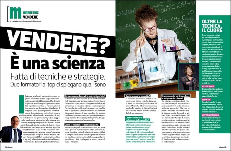 Hai letto l’articolo su Millionaire e ora vuoi saperne di più? Approfitta di una super opportunità! In palio per i lettori ci sono 10 copie di Vendere di più con l’intelligenza emotiva di Colleen Stanley e Vendere è una scienza di Emanuele Maria Sacchi.